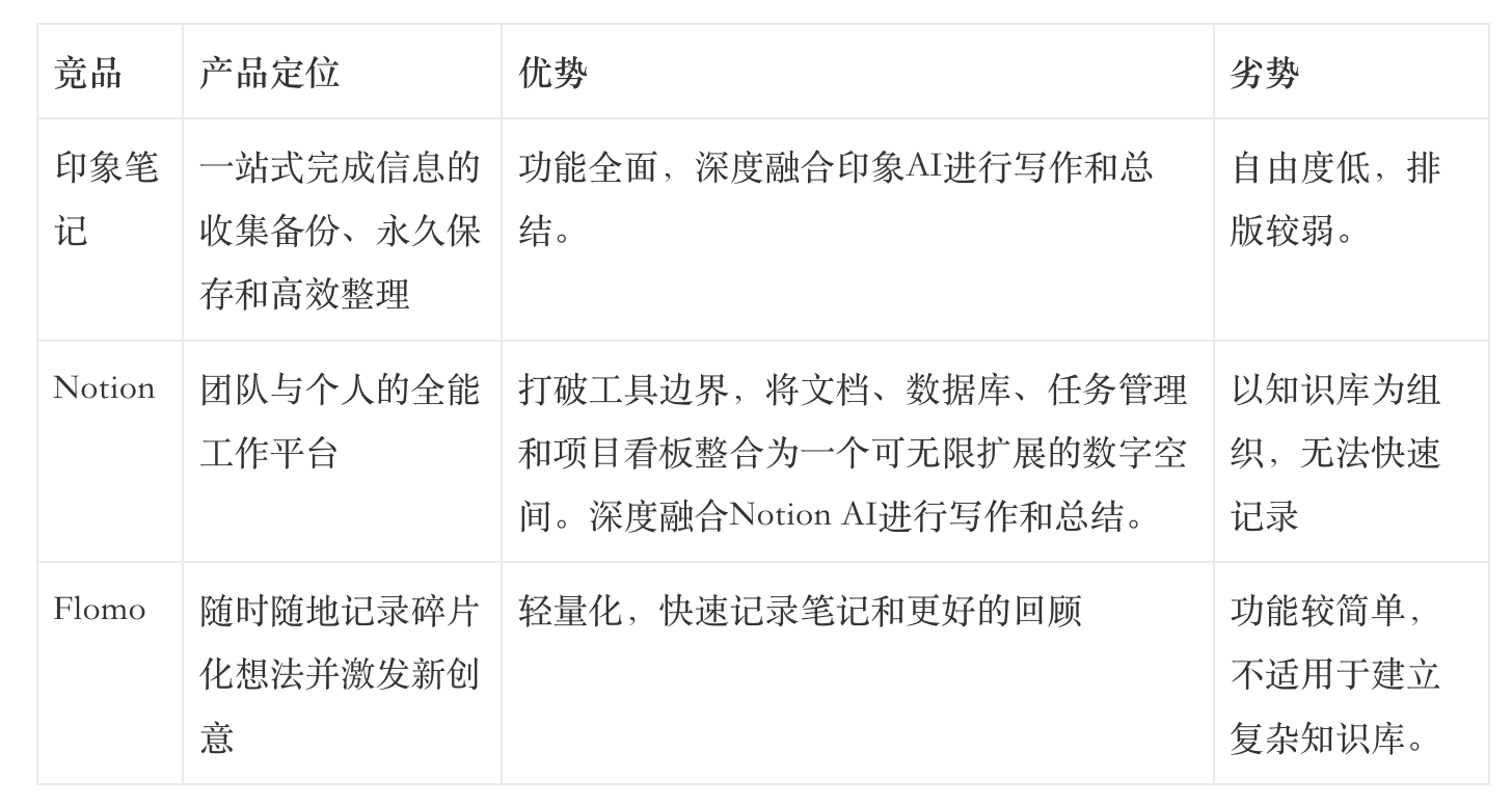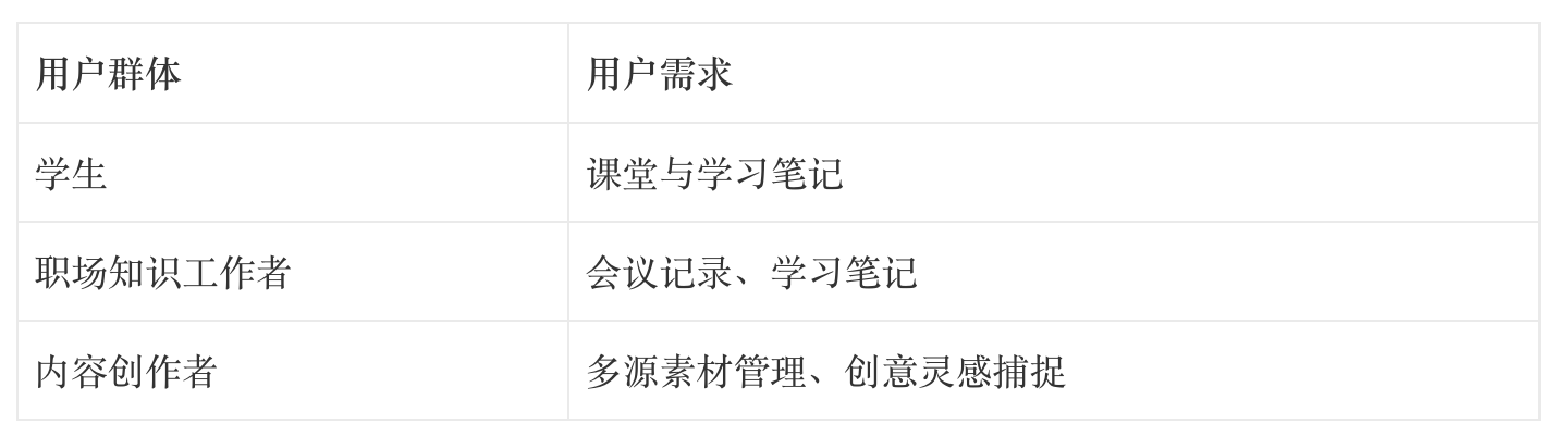 产品价值:通过链接笔记、音视频笔记和图片笔记有效提升了用户获取和记录信息的效率。