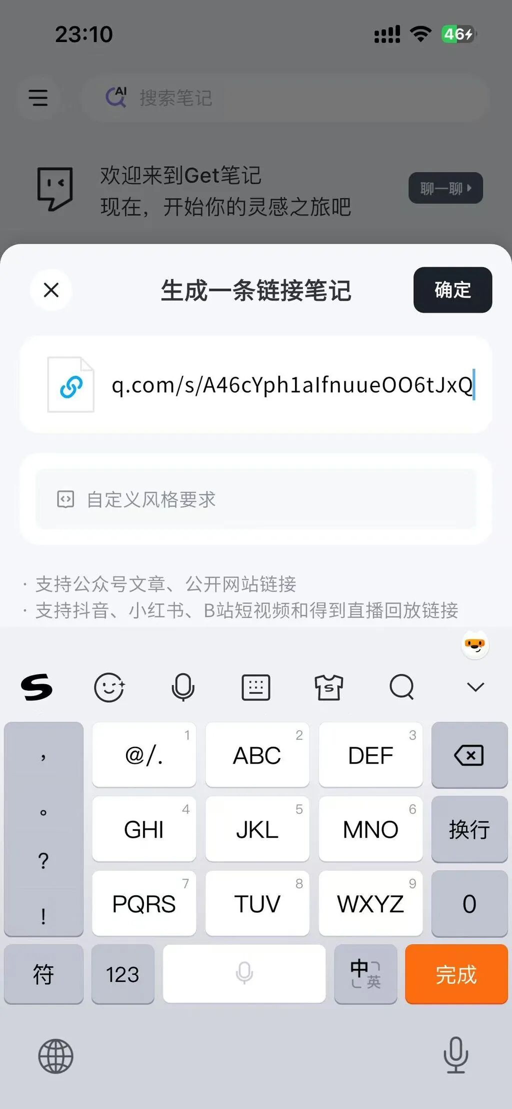 网页端:粘贴链接,点击【生成笔记】即可生成。