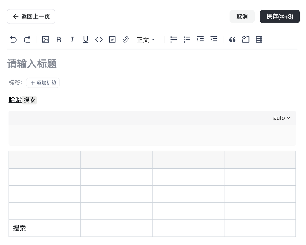如果点击右上角的放大图标,则还可以输入标题、标签、高亮标签、代码、待办、链接、调整缩进、表格。