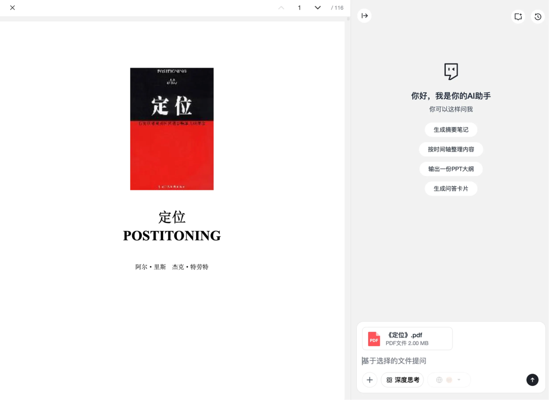 文件导入后,就可以打开AI助手针对这个文件进行问答。