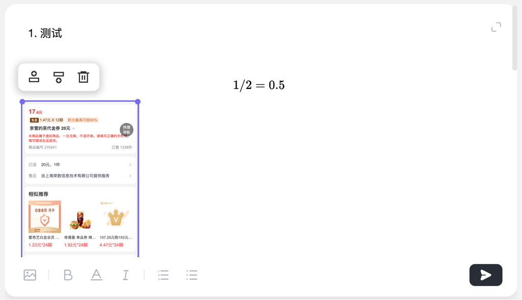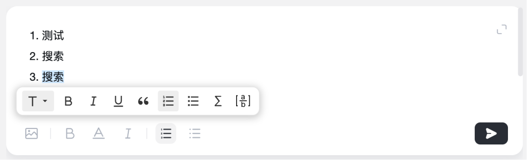 输入体验上,如果我想让文本变成有序列表,可输入【1.】+空格、左下角工具栏、选中文本的悬浮工具栏三种方式,非常方便。
