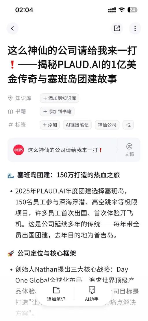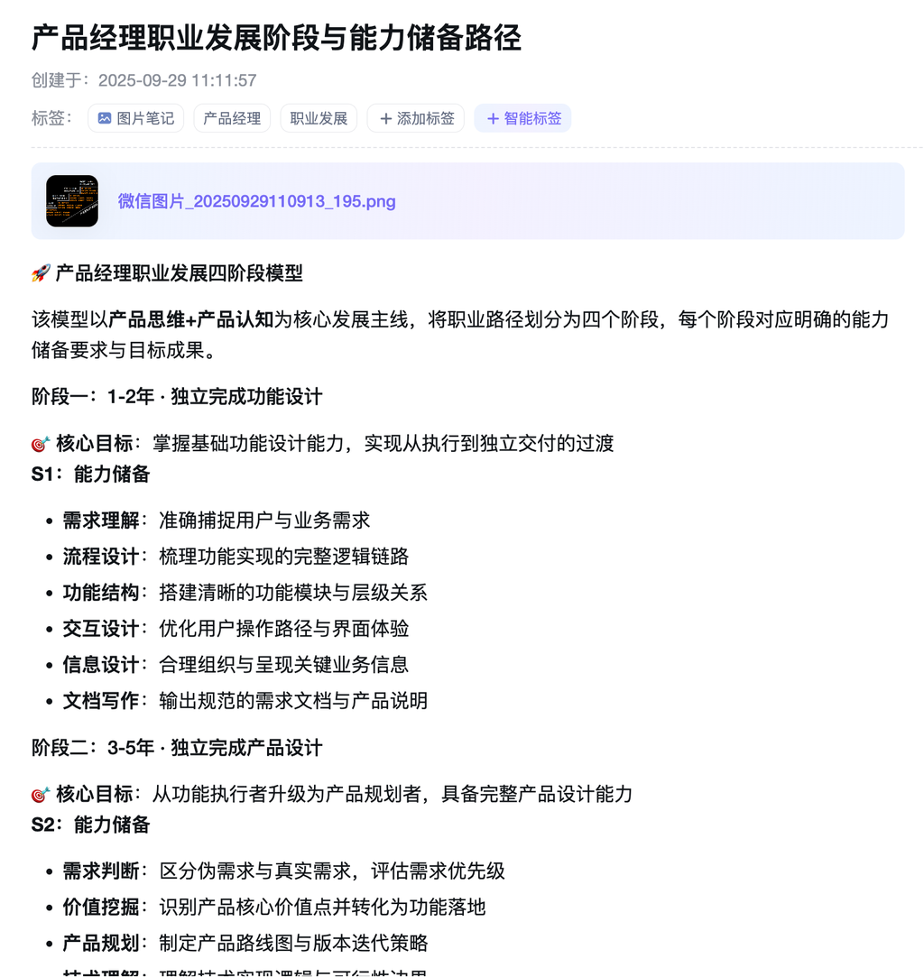 生成完成后,就可以看到AI生成的标题、笔记和标签。如果文章中包含图片,生成的笔记也会引用图片。