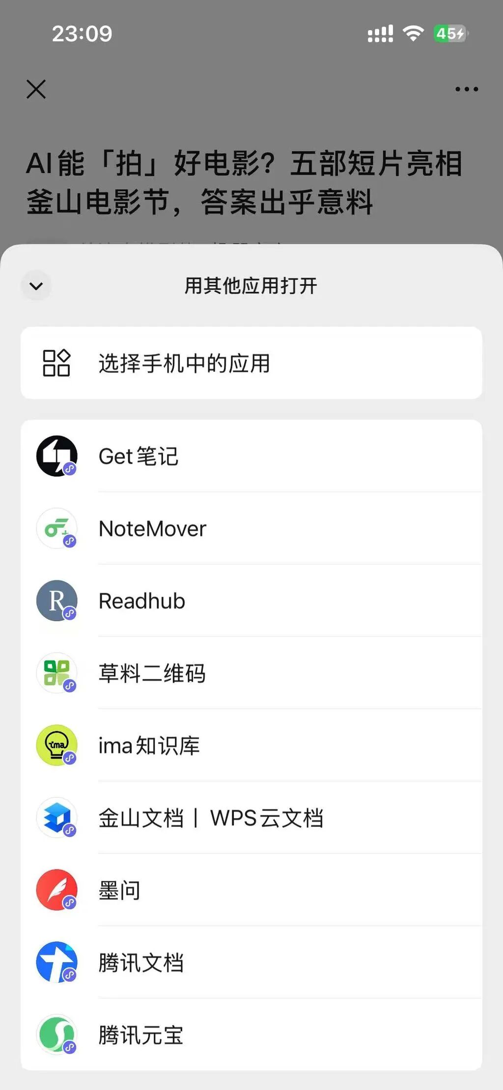 小程序端:在微信文章内【用其他应用打开】选择Get笔记小程序打开即可自动识别到文章链接。