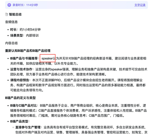 在调用AI总结时也会带上说话人和时间线信息,可以最大程度还原信源内容。