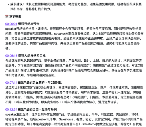 - 线上&线下课程:将老师或讲师的整段授课录音转写为笔记,方便后期复习与检索。