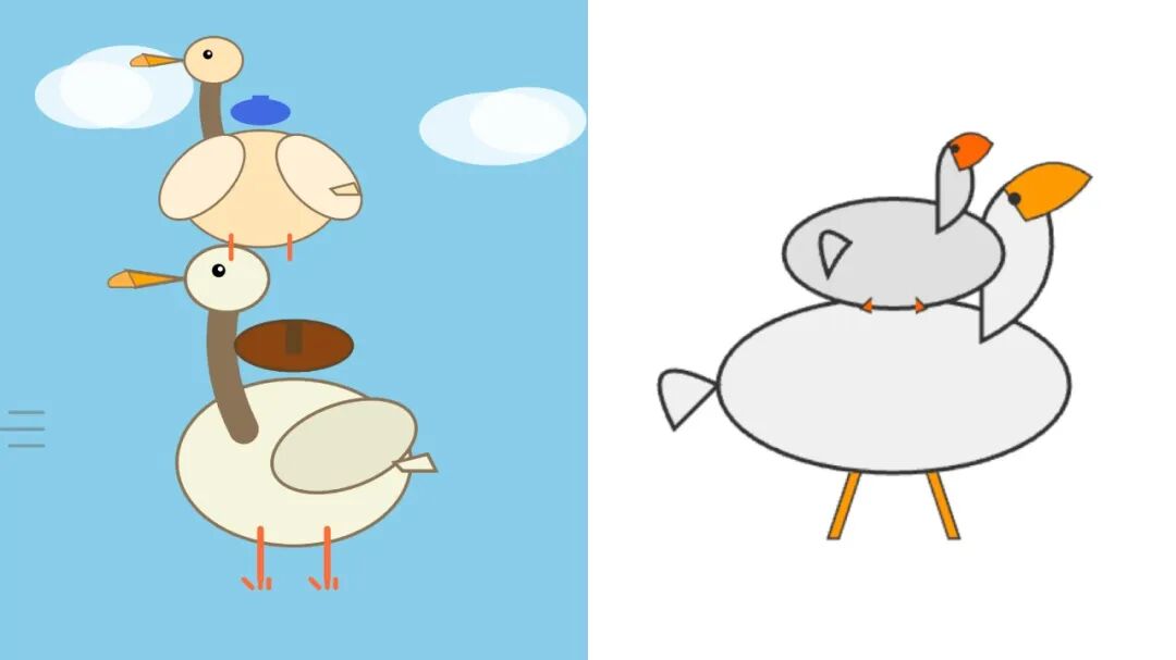 绘制一幅鹈鹕骑着另一只鹈鹕的 SVG 图像