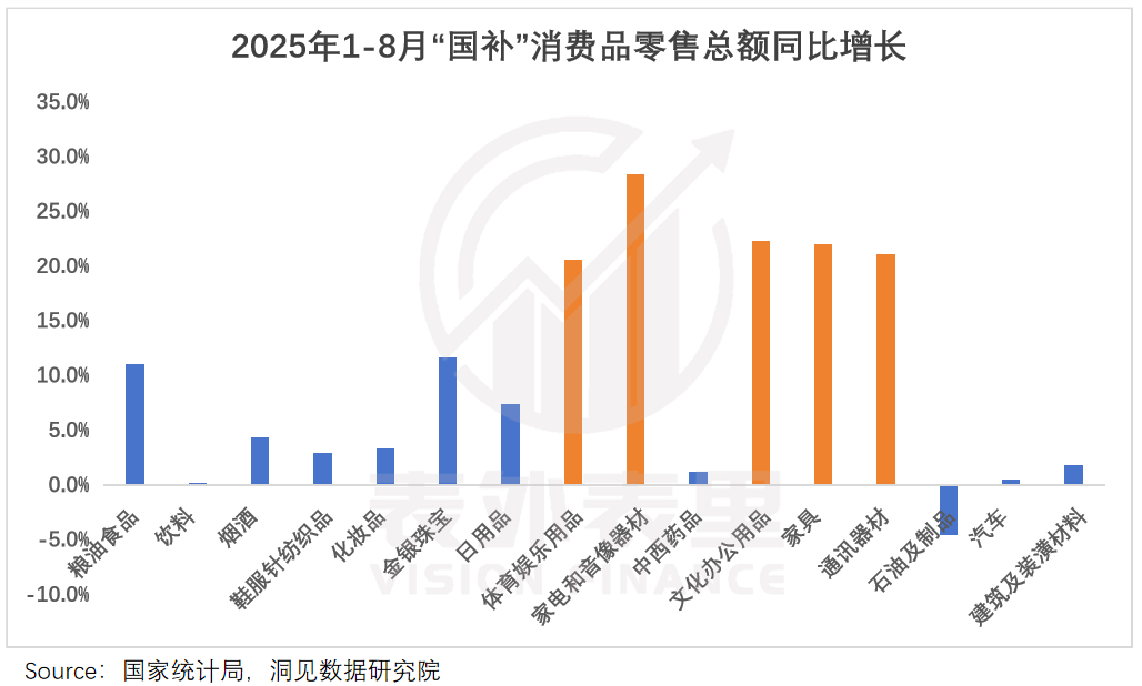 数据显示,截至今年8月,国补以数千亿元的财政投入,撬动了数万亿的消费销售额②,主要品类零售总额增长超20%。