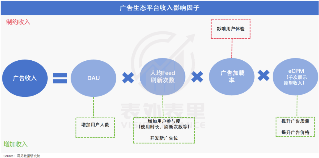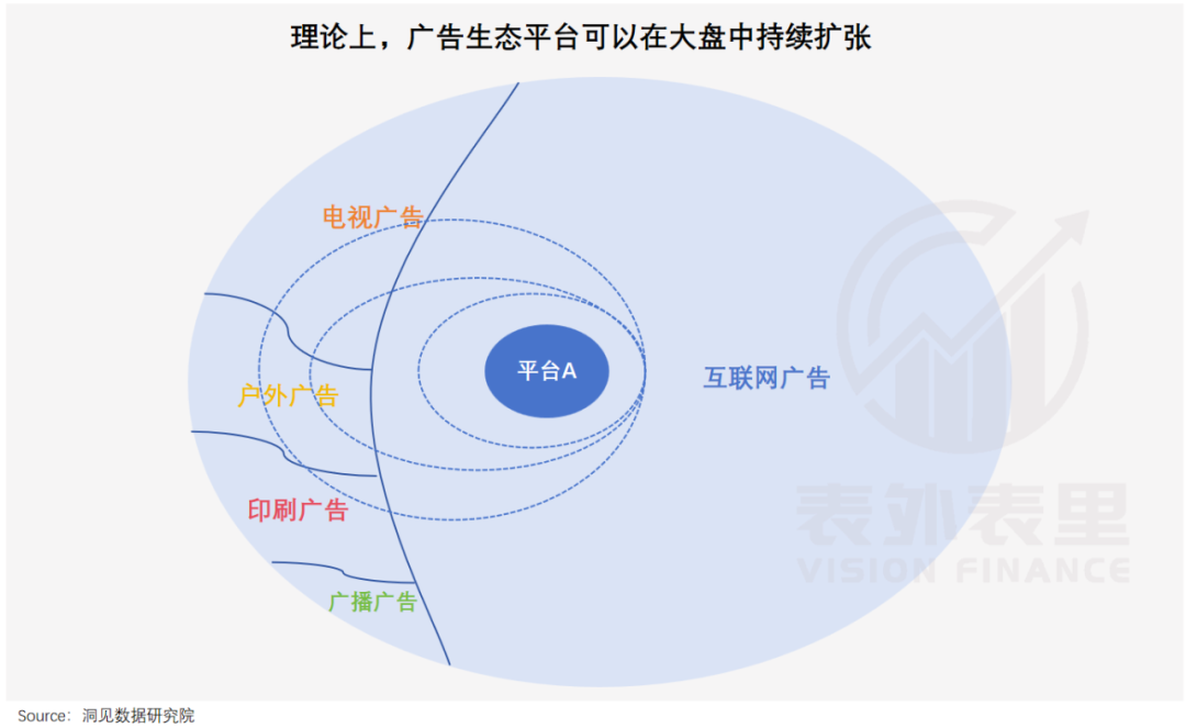 而广告生态平台则不同,理论上可“上不封顶”:只要保证内容吸引力、算法精准度,就可以通过提价、加量不断扩张,甚至把电视、户外广告的蛋糕都切走。