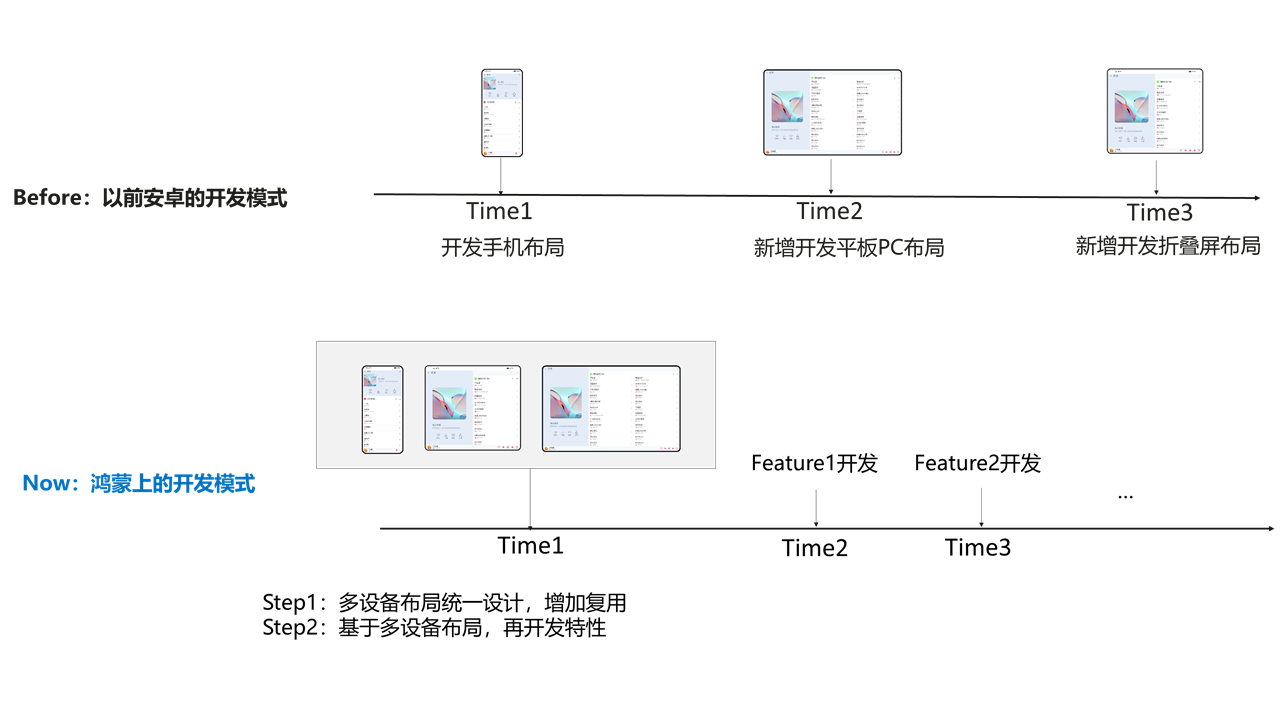 随着终端设备形态日益多样化,分布式技术逐渐打破单一硬件边界,一个应用或服务,可以在不同的硬件设备之间随意调用、互助共享,让用户享受无缝流转的全场景体验。HarmonyOS 系统面向多终端提供了“一次开发,多端部署”的能力(后文简称“一多”能力),让开发者可以基于一种设计,高效构建多端可运行的应用。以下为长相思App接入“一多”能力的主要开发步骤: