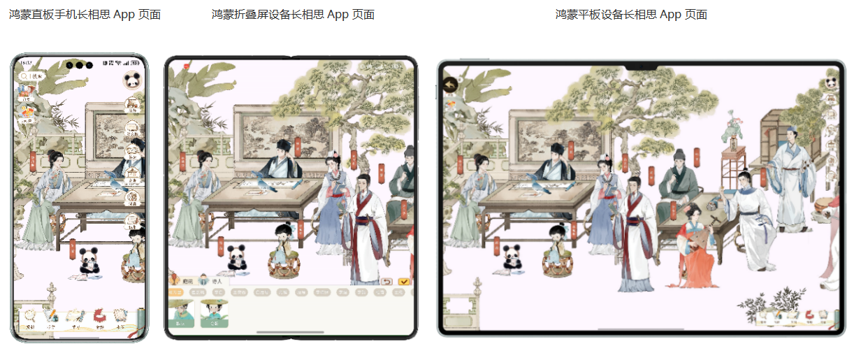 长相思开发团队针对华为折叠及平板设备进行了深度鸿蒙适配,包含界面级、功能级一多适配。使长相思App可以在不同的硬件设备之间随意调用、互助共享,让用户享受无缝连接的全场景体验。