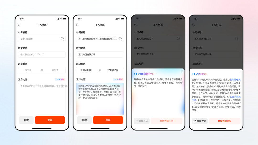 此外,这个设计我们将延展到了更多场景,比如我们已在简历填写中引入AI帮写,数据同样有了大幅提升。未来,我们也将探索更多IP与用户连接的方式,加入更多 AI 智能场景。