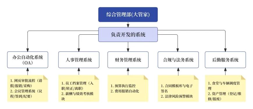 主要负责公司的党建、纪检、审计、组织人事、法律事务、项目管理、信息技术治理、企业文化建设以及日常办公管理等工作。