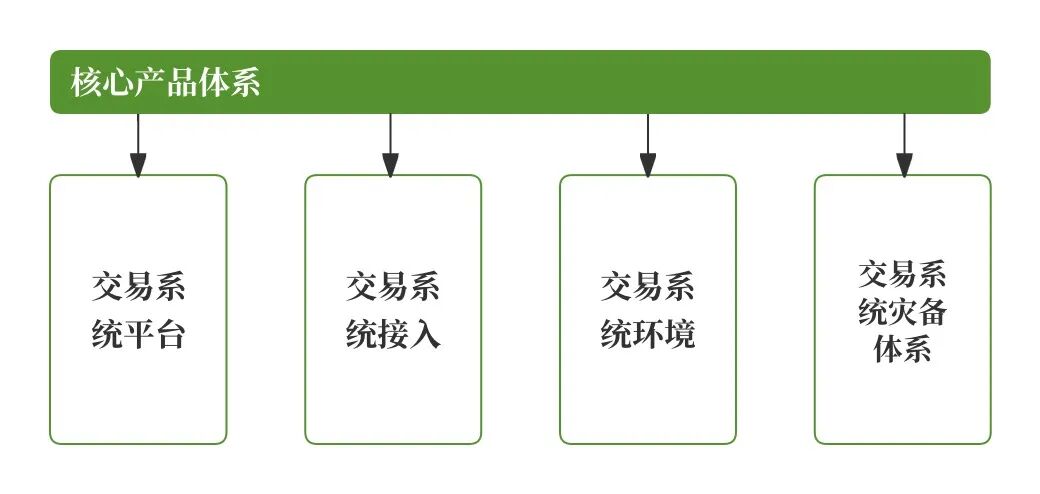 通过上图我们了解了上交所技术的技术架构,现在我们来梳理下上交所技术的核心产品体系是什么、具体由什么产品组成等。核心产品体系包含:交易系统平台、交易系统接入、交易系统环境、交易系统灾备体系,如下图所示: