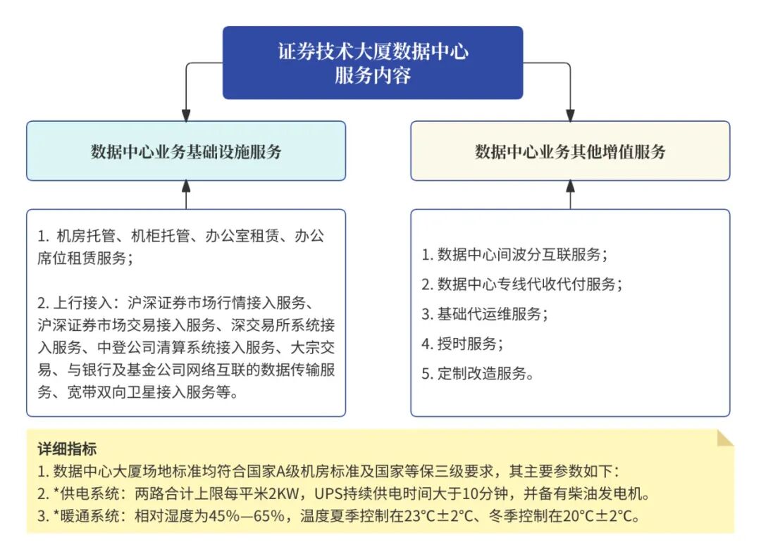 证券技术大厦证券技术大厦为上交所技术公司自建数据中心,占地面积15,600平米,总建筑面积28,800平方米,于2004年12月奠基,2007年1月正式启用。目前有全国各地90余家用户的中心或灾备机房入驻其中,已成为名副其实的证券业数据中心和灾备中心。