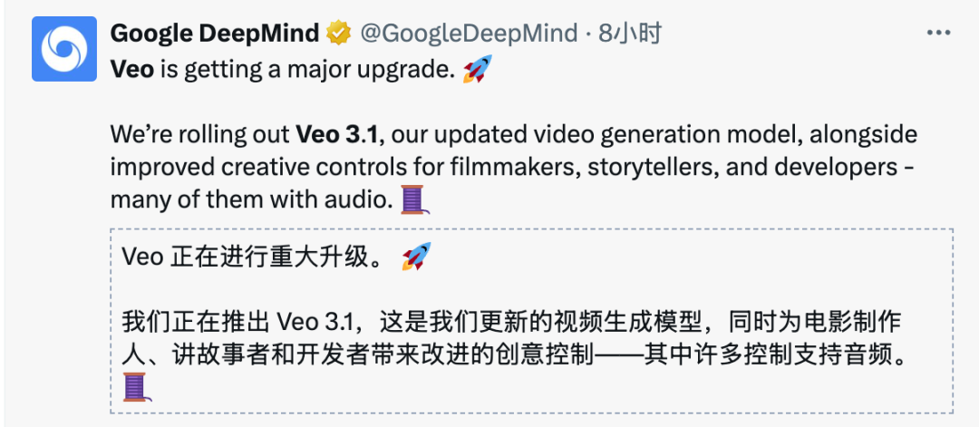 但这个只是Veo 3->Veo 3.1的一次微调。
