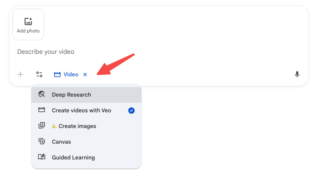 Gemini可选择创建Video,即可使用Veo 3.1。