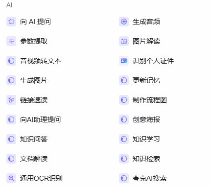 综上所述,AI表格的核心功能可以归纳为 “数据、自动化、应用、表单” 四大模块。