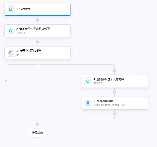 - 新客户填写表单 → 自动生成客户档案 → 自动分配销售负责人;