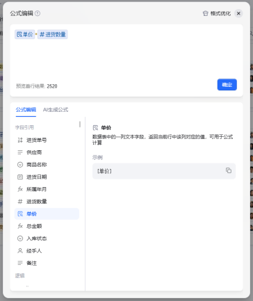 借助计算字段,系统可以自动完成“单价 × 数量 = 金额”的计算,或者根据进价、售价计算毛利率,减少人工计算的出错风险。