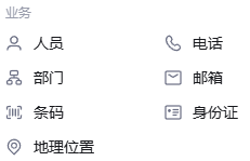 - 和业务流程关联的字段:这些字段和内部/外部业务流程关联,辅助保证业务流程的通常。对内部,可以基于组织结构确定相关人员。对外部,可以录入指定客户的手机、身份证、地理信息。