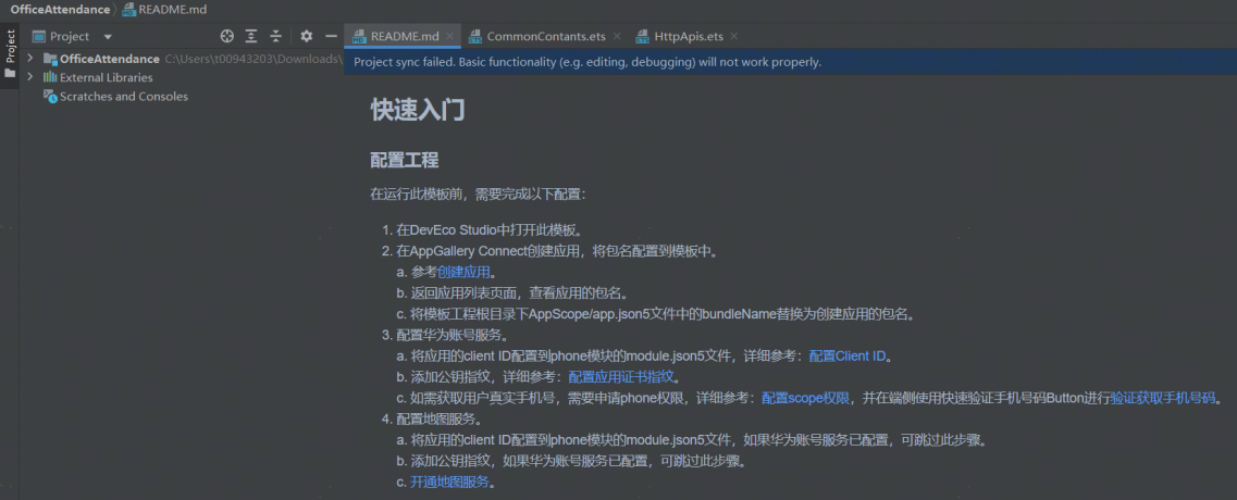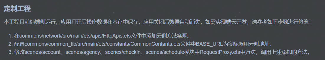 - 本模板已集成华为账号、地图、日历等服务,只需做少量配置和定制即可快速实现华为账号的登录、考勤打卡、待办和日程管理等功能。