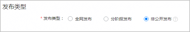 - 在“版本信息”页面的“发布类型”区域,选择“非公开发布”(注意:此时会看到“全网发布”“分阶段发布”“非公开发布”三个选项,需精准勾选);