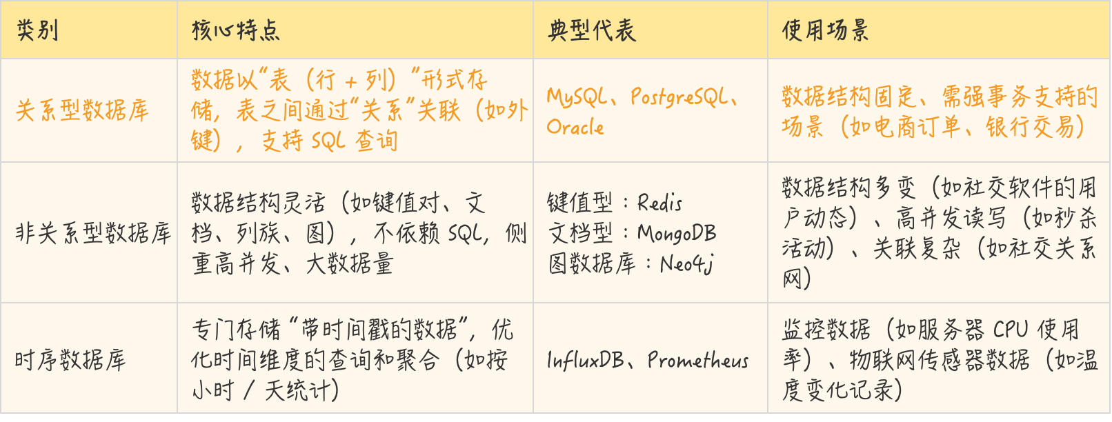 接下来的章节咱们重点聊聊关系型数据库,因为其他的我也不太懂~