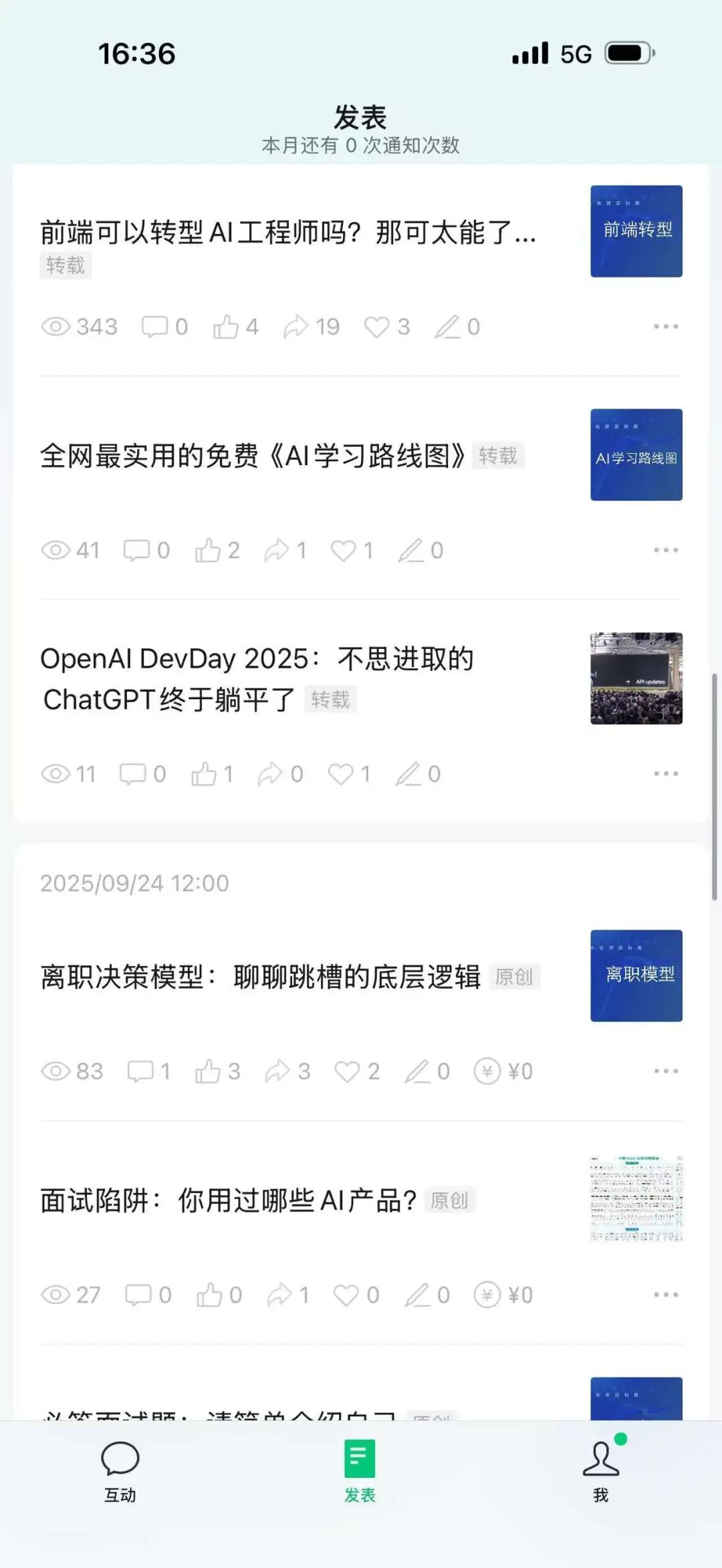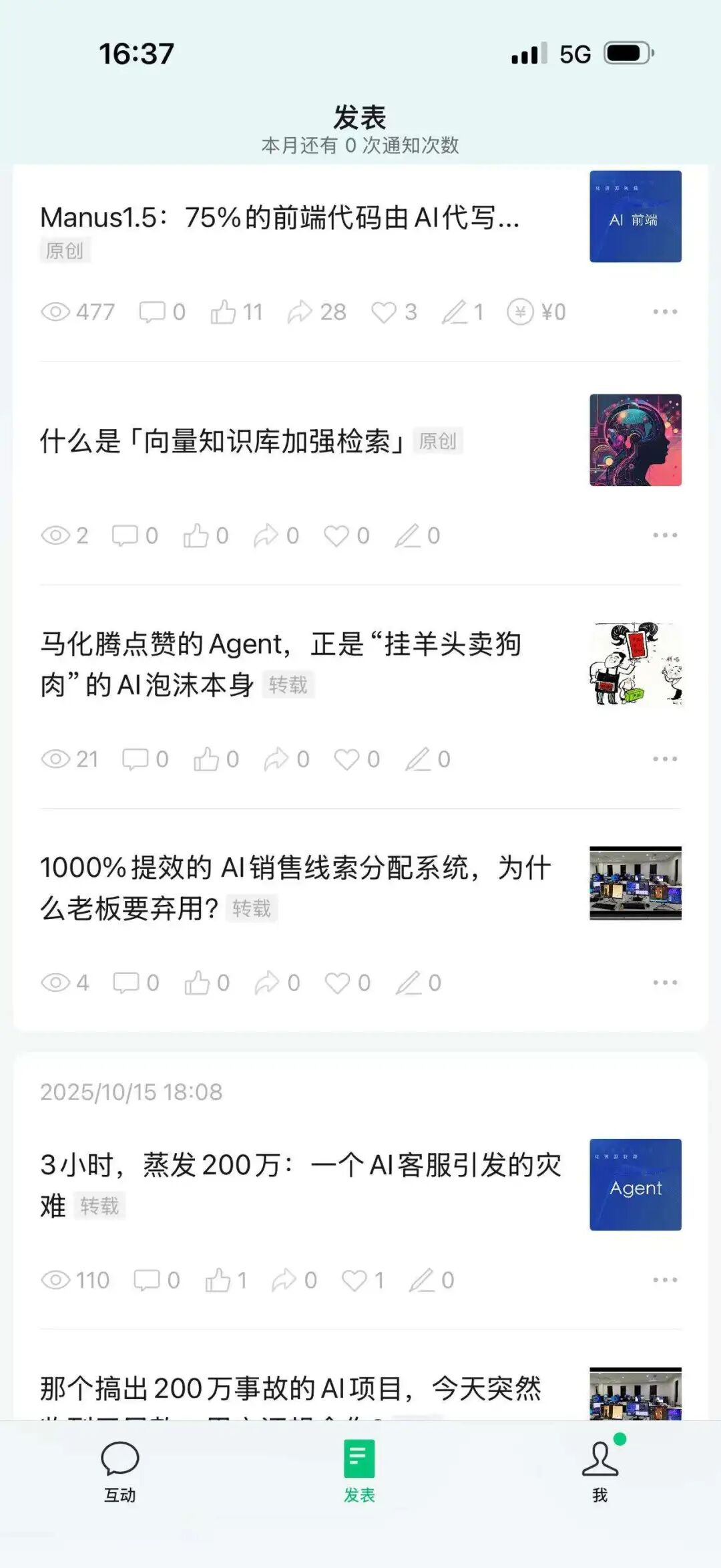 我这边是去年正式开始做个人IP,几乎保持了工作日日更,初期核心在做管理相关课题,而后保密、竞业协议到期后就开始更新AI相关文章,并且重来没接过广告。