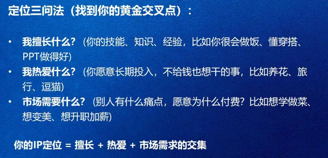 你的IP定位 = 擅长 + 热爱 + 市场需求 的交集