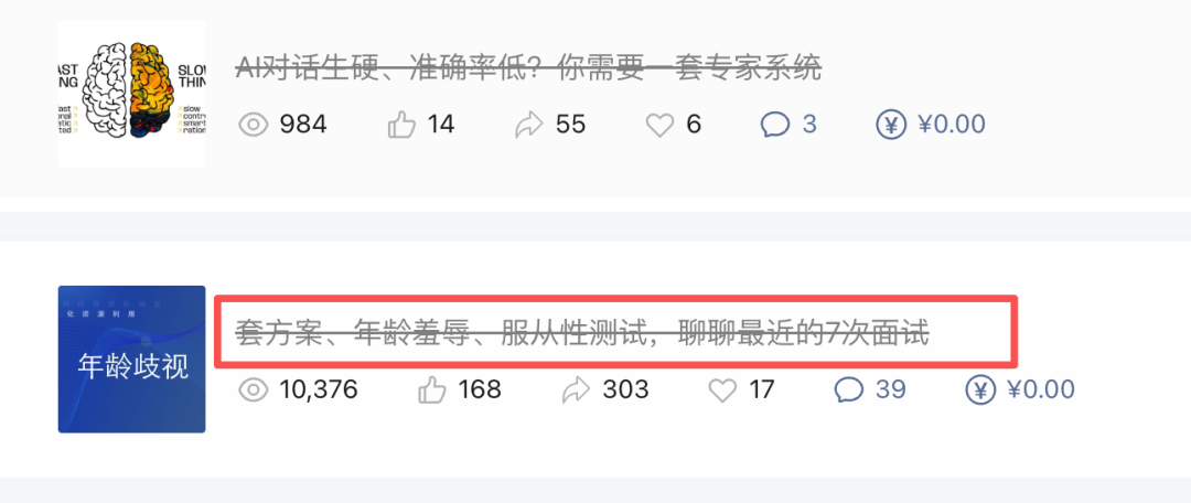 事实上,我是个“严谨”的人,之前还做了很多流量测试,比如之前搞了一波中年危机、年龄歧视话题:
