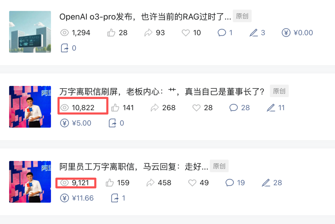 首先,我今年以前写的是管理课题,平台给的流量推荐非常多,我去年有很多管理爆款文章,5篇以上近10万阅读的文章,而从今年开始我发现流量推荐不足去年1/5甚至开始没有平台流量了!