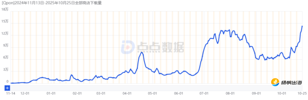 (Qpon上线至今全商店总下载量,图源:点点数据)