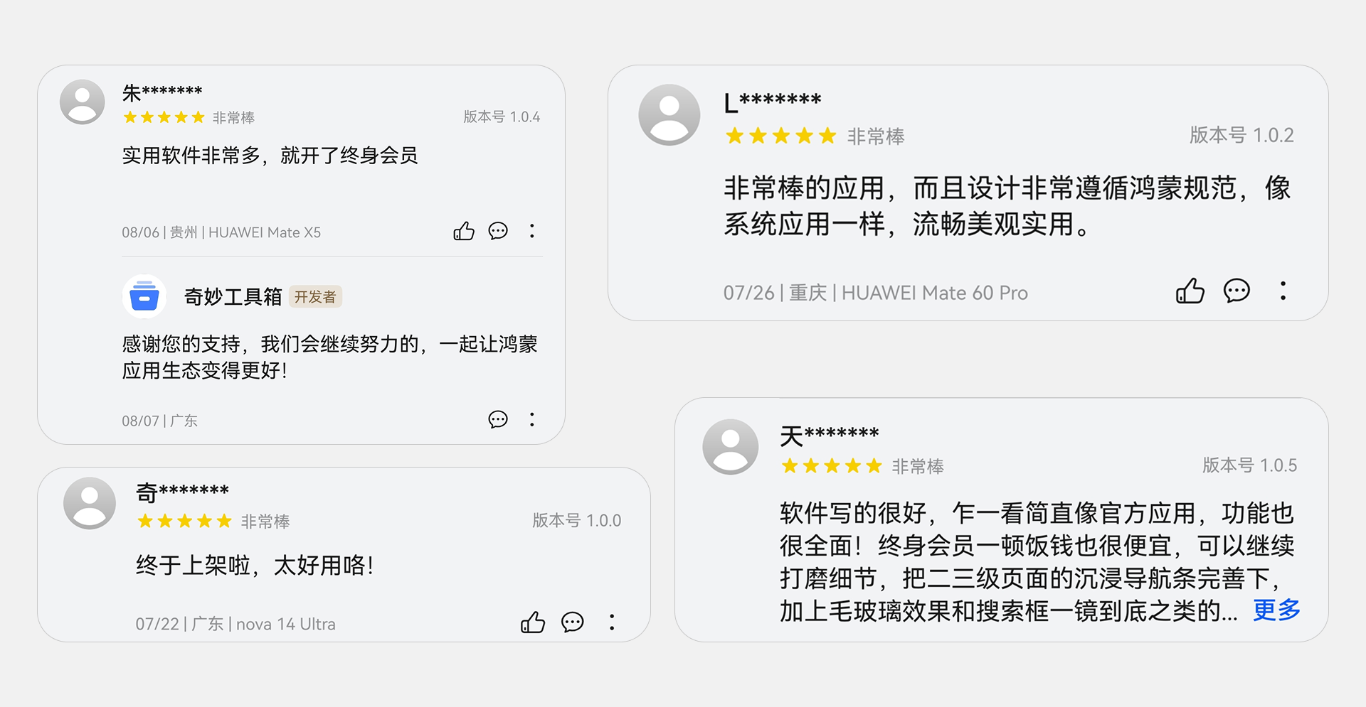 图源:奇妙工具箱在App Gallery上的用户评价