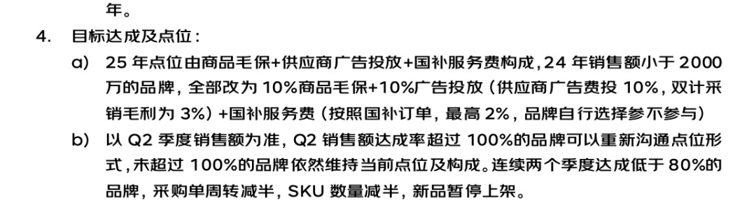 中国甘肃网刊登的一篇报道中就提到,一份京东和商家的标准合同截图显示2024年销售额2000万以下的品牌,要保证京东至少有10%的毛利,另外还要在平台上投放10%的广告。如果参与了国补,还要支付额外的国补服务费。