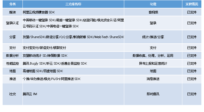 SDK链接:支付宝SDK、微信支付SDK、银联SDK、腾讯QQ SDK、新浪微博SDK、极光PUSH SDK、友盟移动统计SDK、腾讯微信SDK、高德地图SDK、个推、Bugly、ShareSDK、听云SDK、腾讯云 IM