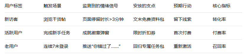 A/B测试:在同一情绪场景下,测试不同的“支点”文案、形式和权益,看哪个更能撬动行动。