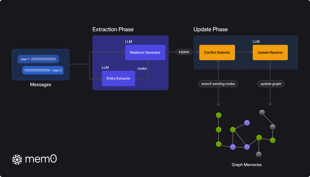 Mem0 的底层架构其实是在解决“如何让AI像人一样记得有用的事”。