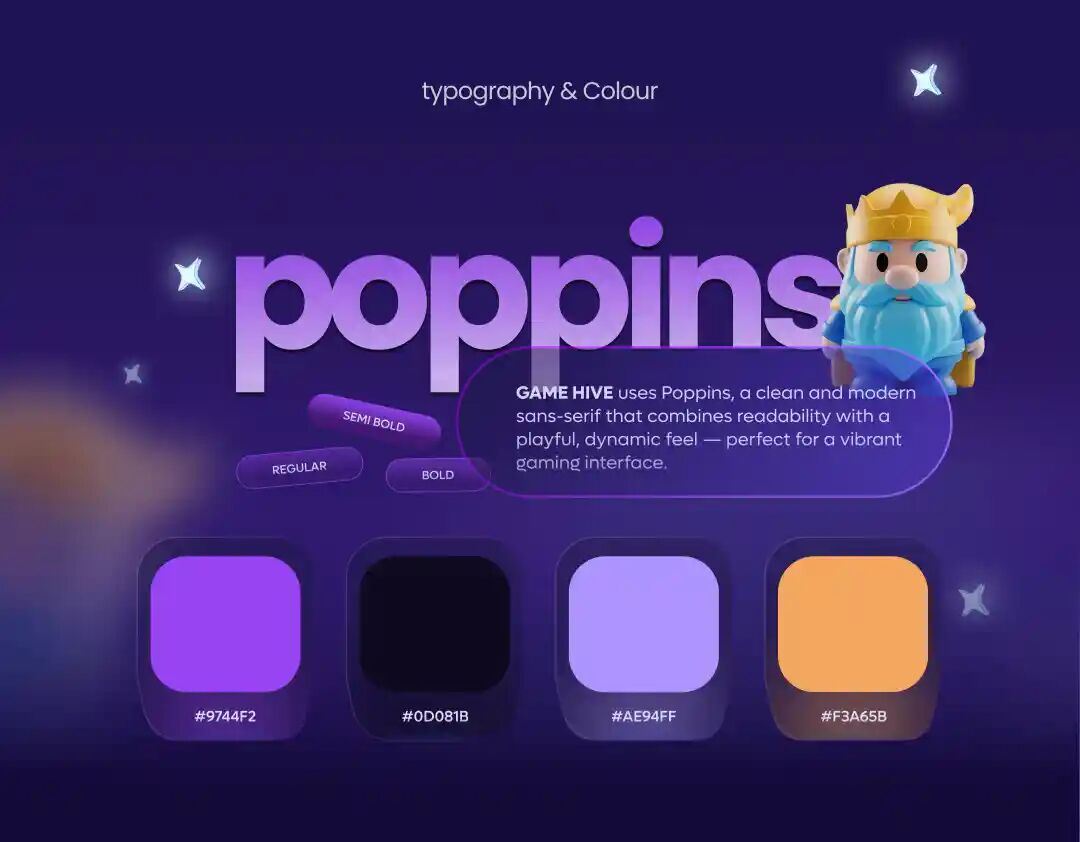 深色背景搭配金色、紫色等高饱和色,营造奢华感。