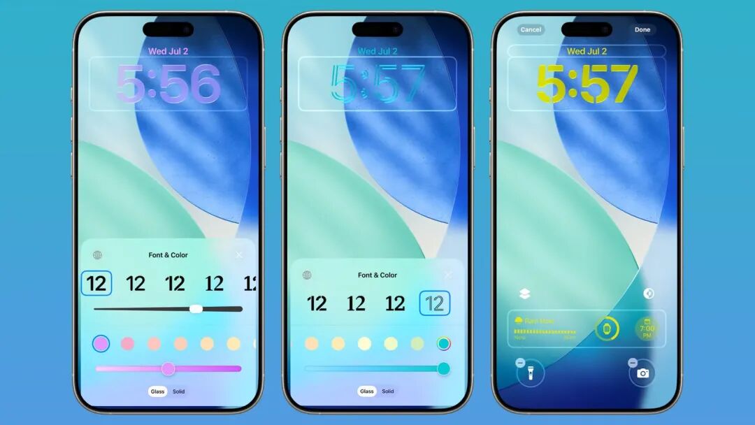 除了具有液态玻璃美感外,还可以调整时钟的大小,以更好地匹配您的iPhone壁纸使用新的自适应功能,自定义锁定屏幕时,您可以抓住时间的一角并将其向下拖动以展开它。