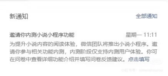 前几天,一些微信公众号作者,在后台收到微信小说小程序内测通知。