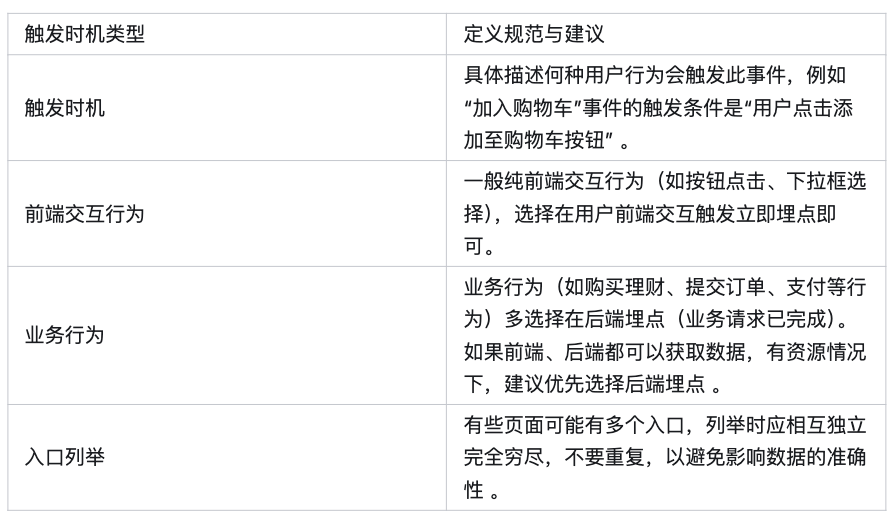 事件的触发时机往往是影响数据准确性的重要因素,要尽量选择最贴近业务的统计口径 。