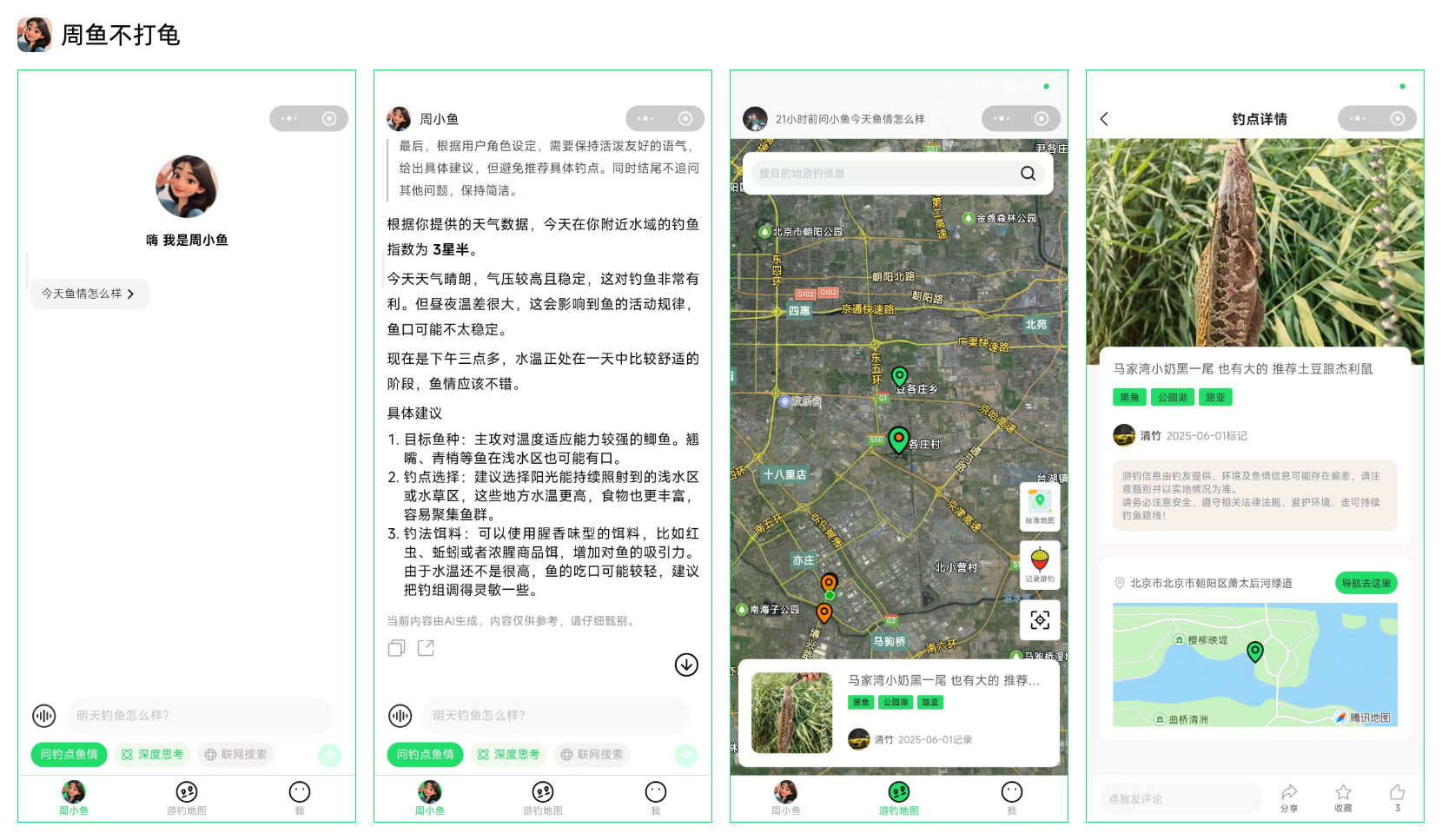 起步阶段的周鱼不打龟,当前功能简洁轻量,但有大模型的先进技术打底,未来在钓鱼这件事情上的正面助力和想象空间不可限量。