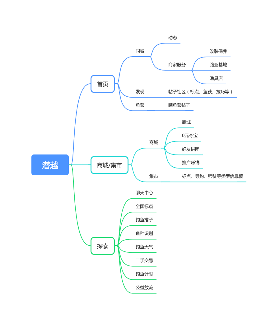 当前潜越App的功能布局还是以社区和商城两个主要的版块为主,其余所有工具功能全部塞到了探索版块下面。我把它当前功能版块图拆解如下:
