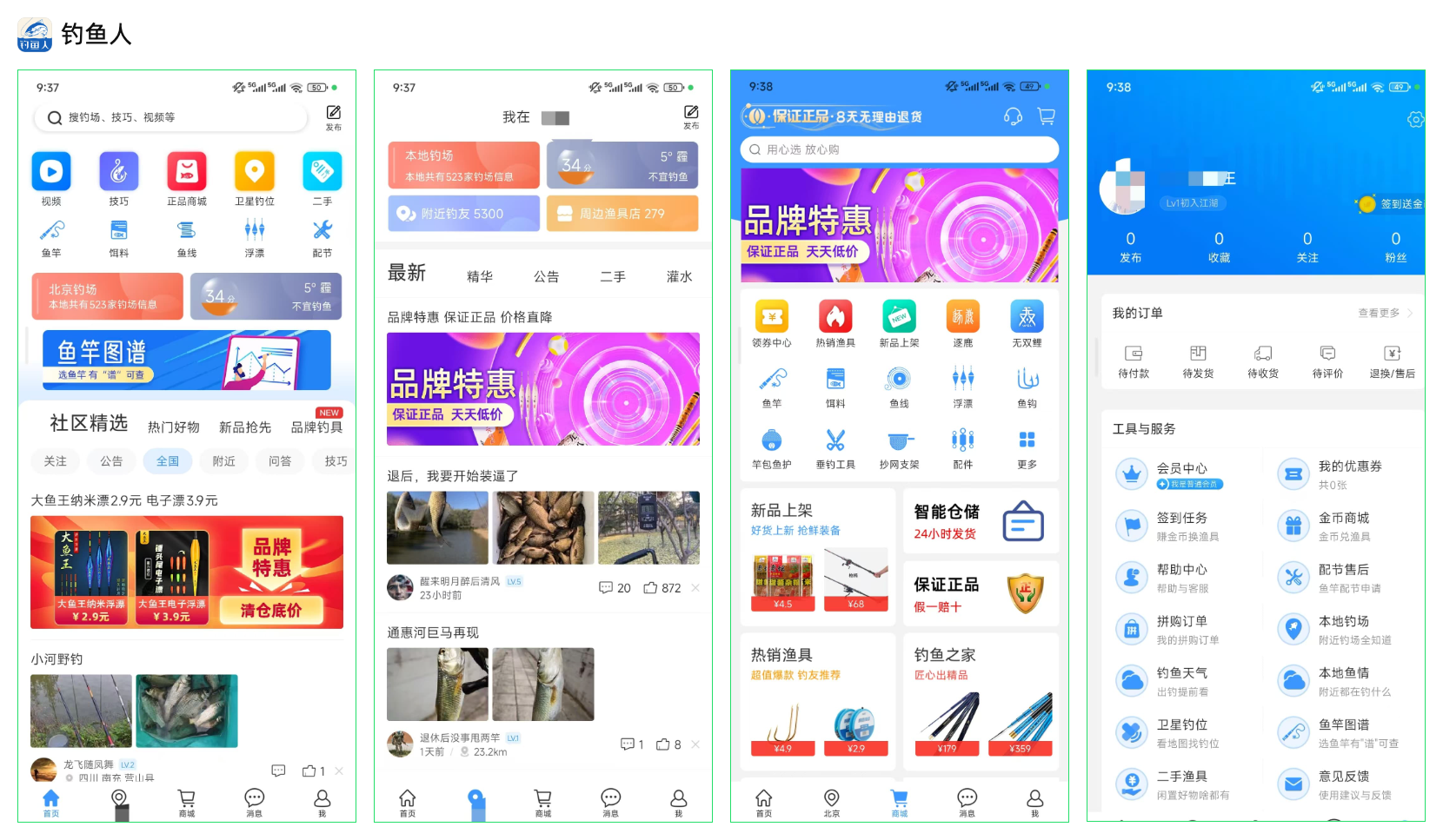只凭钓鱼人App界面的第一观感,你会发现钓鱼人App虽然是社区起家,但它却是几个App里商业气息最浓厚的。