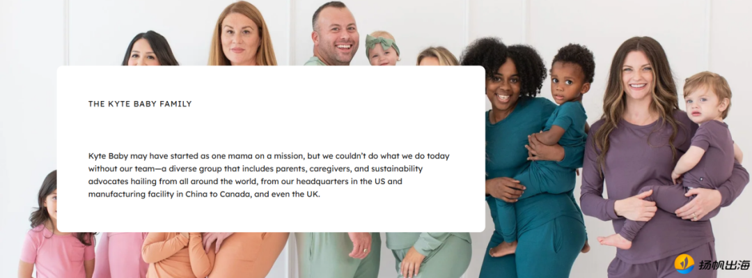 Kyte Baby声明了团队的多元化,在官网标注“中国工厂制造、总部设立在美国”,既展现了品牌透明度,也回应了用户对生产来源的关注。