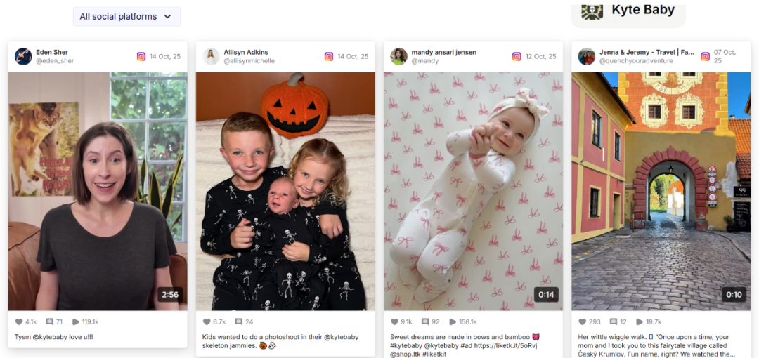 Kyte Baby博主合作推广图文示例,来自Modash