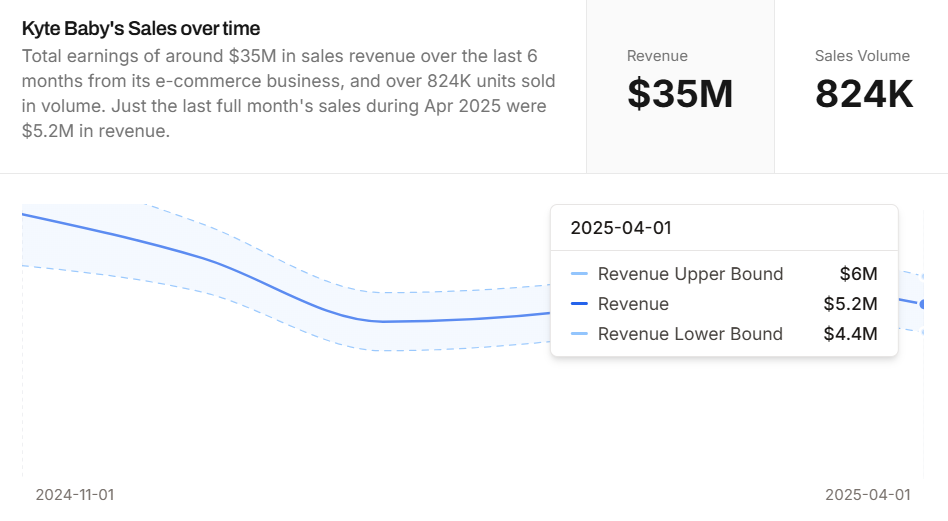 2024年11月至2025年4月Kyte Baby销售额变化,来自Particl