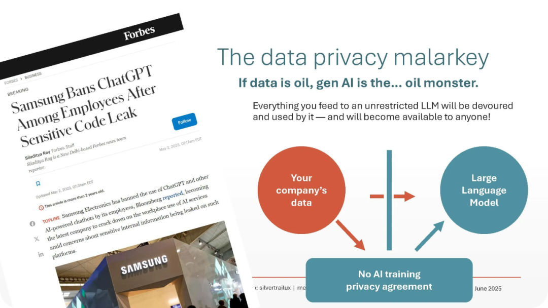 数据隐私问题。这是我在 2025 年人机交互设计中心会议演讲中的一张幻灯片。(图片来源:Tania Ostanina)