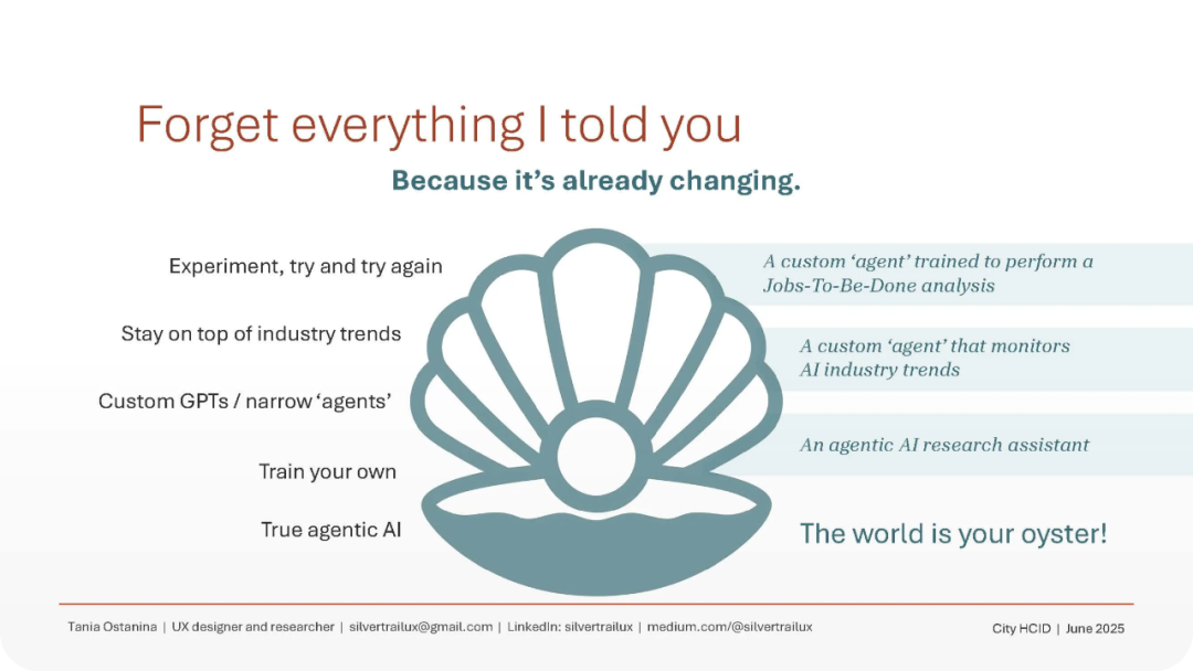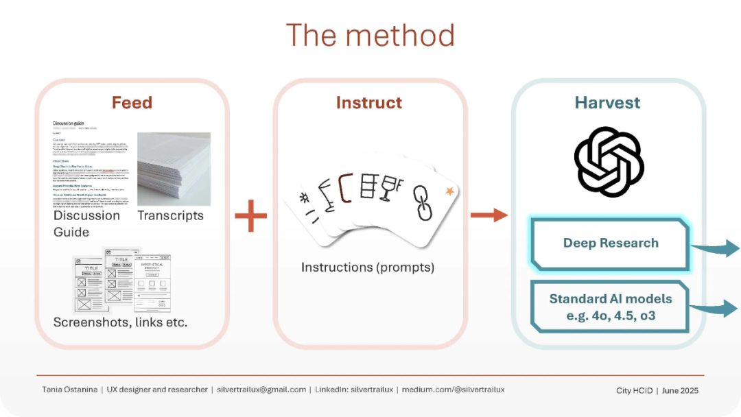 该方法。这是我在 2025 年人机交互设计中心会议演讲中的一张幻灯片。(图片来源:Tania Ostanina)