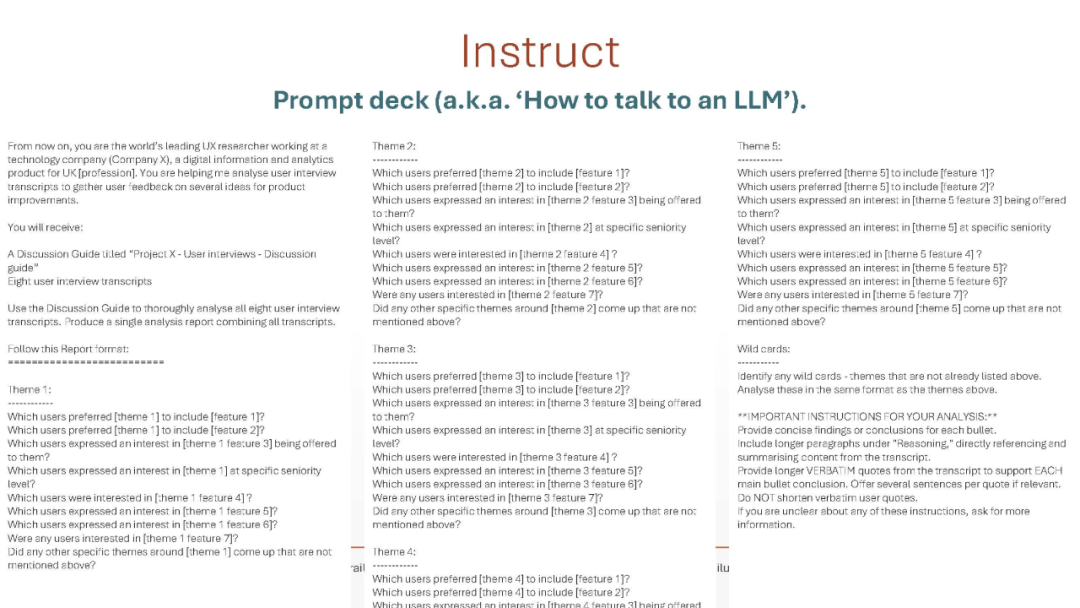好了,你已经把访谈记录、截图和讨论指南输入给模型了。那要怎么告诉模型该怎么处理这些内容呢?
